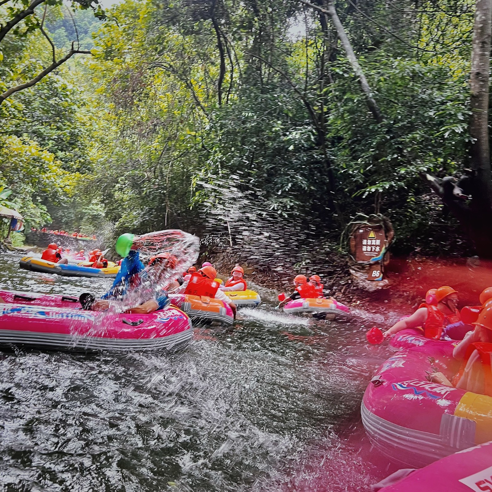 盡管天氣不佳,但絲毫不影響我們沿路的歡歌笑語,跟隨著一路的風景進入了清遠古龍峽漂流。