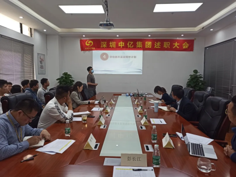 2020年年末已悄然來臨,深圳中億集團各部門的工作即將接近尾聲,在12月開展為期三天的述職大會。這次述職大會主要有6個部門參加,大會主要以“員工述職、述職員工答辯、評委打分”的模式進行,與會評委由深圳中億集團董事長彭長江和管理層的全體成員擔任。會議一開始由主持人宣導述職大會背景,再由各部門員工依次進行述職,每個部分都有嚴格的時間把控。