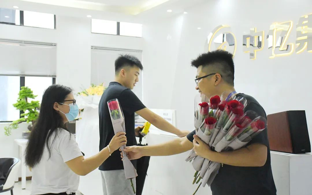 早上,孫總手捧鮮花,為公司女生送上節日的祝福,祝大家七夕節日快樂!