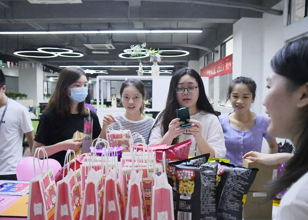 在“送花”的開場儀式下,公司七夕活動正式拉開帷幕。每位員工根據自身感情狀態,挑選相應的禮物,一時間禮物臺被團團圍住。