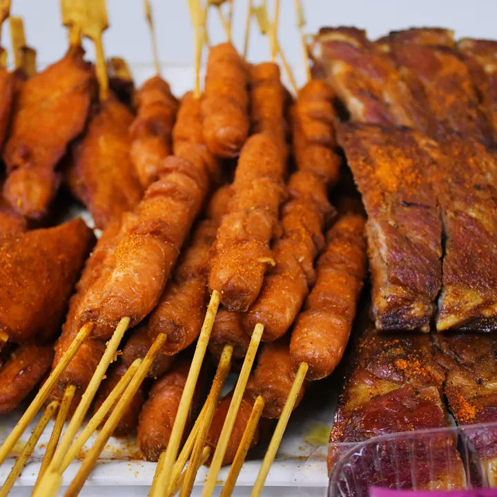 游戲過后,中秋節活動已接近尾聲,我們迎來更大的驚喜。一陣香味襲來,映入眼簾的是燒烤鹵味和披薩,甜點水果和飲料等等數不盡的美食擺起的沙龍。