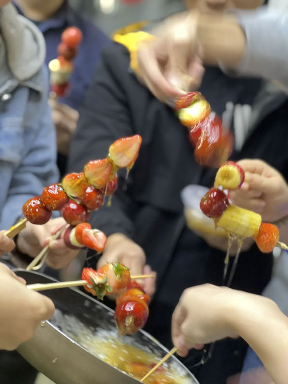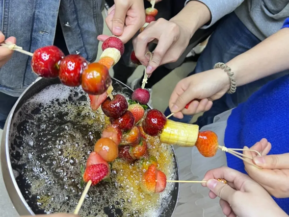 當(dāng)溫暖心窩的麻心湯圓,遇上香甜可口的冰糖葫蘆一切都是如此的完美~?短短幾分鐘,湯圓、冰糖葫蘆就被大家搶奪一空。