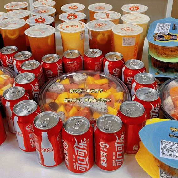 一瓶瓶定制,專(zhuān)屬的可樂(lè),擺放整齊,營(yíng)造濃厚節(jié)日氛圍。