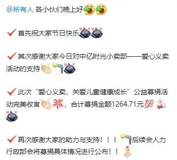 此次中億時光小賣部在大家的大力支持下,迎來了大豐收,為“愛心義賣,關(guān)愛兒童健康成長”公益活動募捐到1264.71元。一場小小的義賣活動,讓整個六一變得更加快樂且具有意義。
